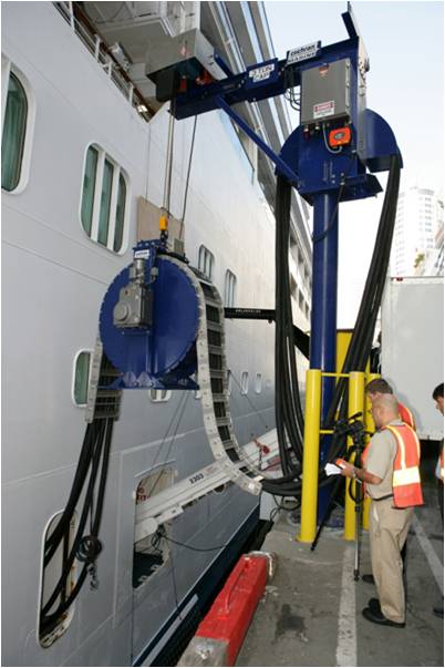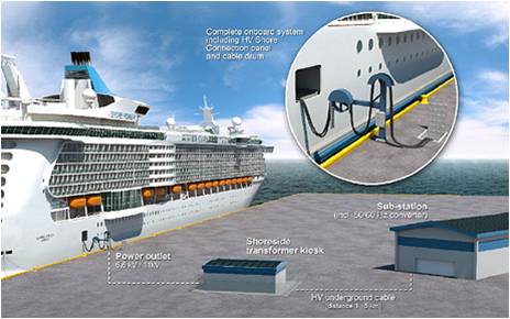 The connection enable ships to shut off onboard engines and utilize the electrical power available at the port, this practice is known as "Cold Iron"